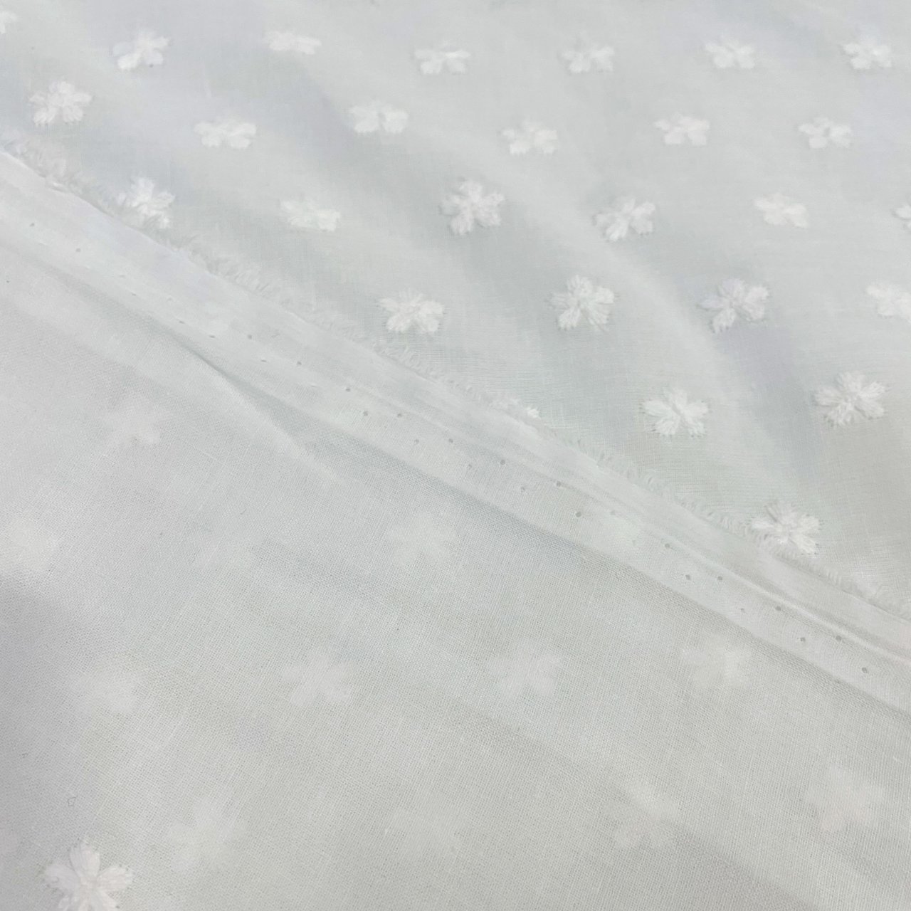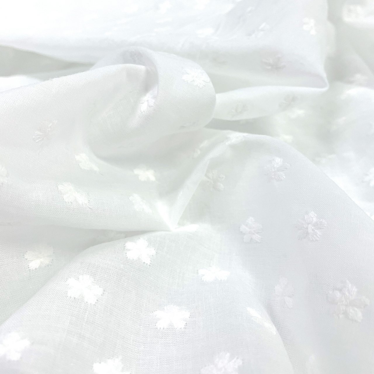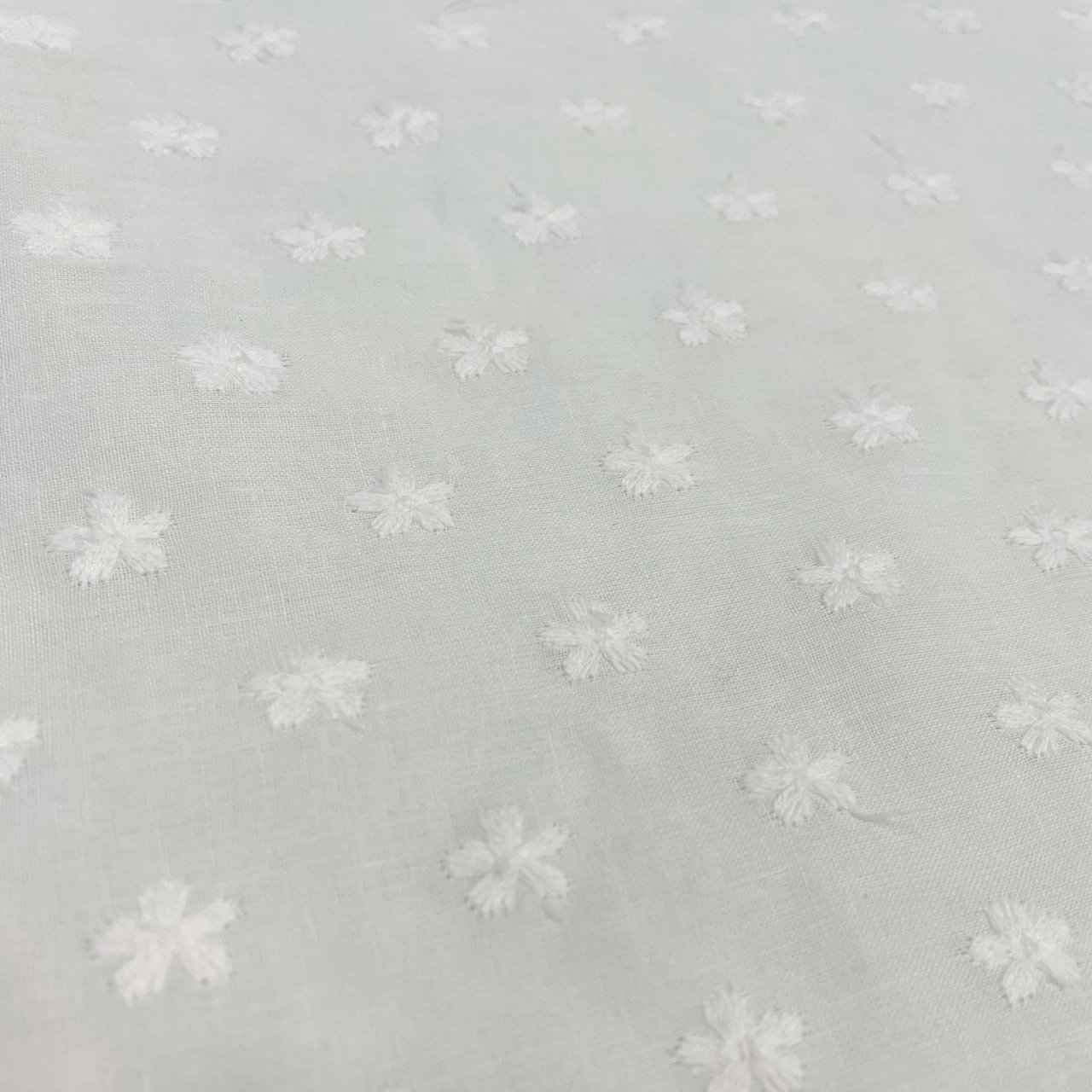 Батист молочный в мушку цветок